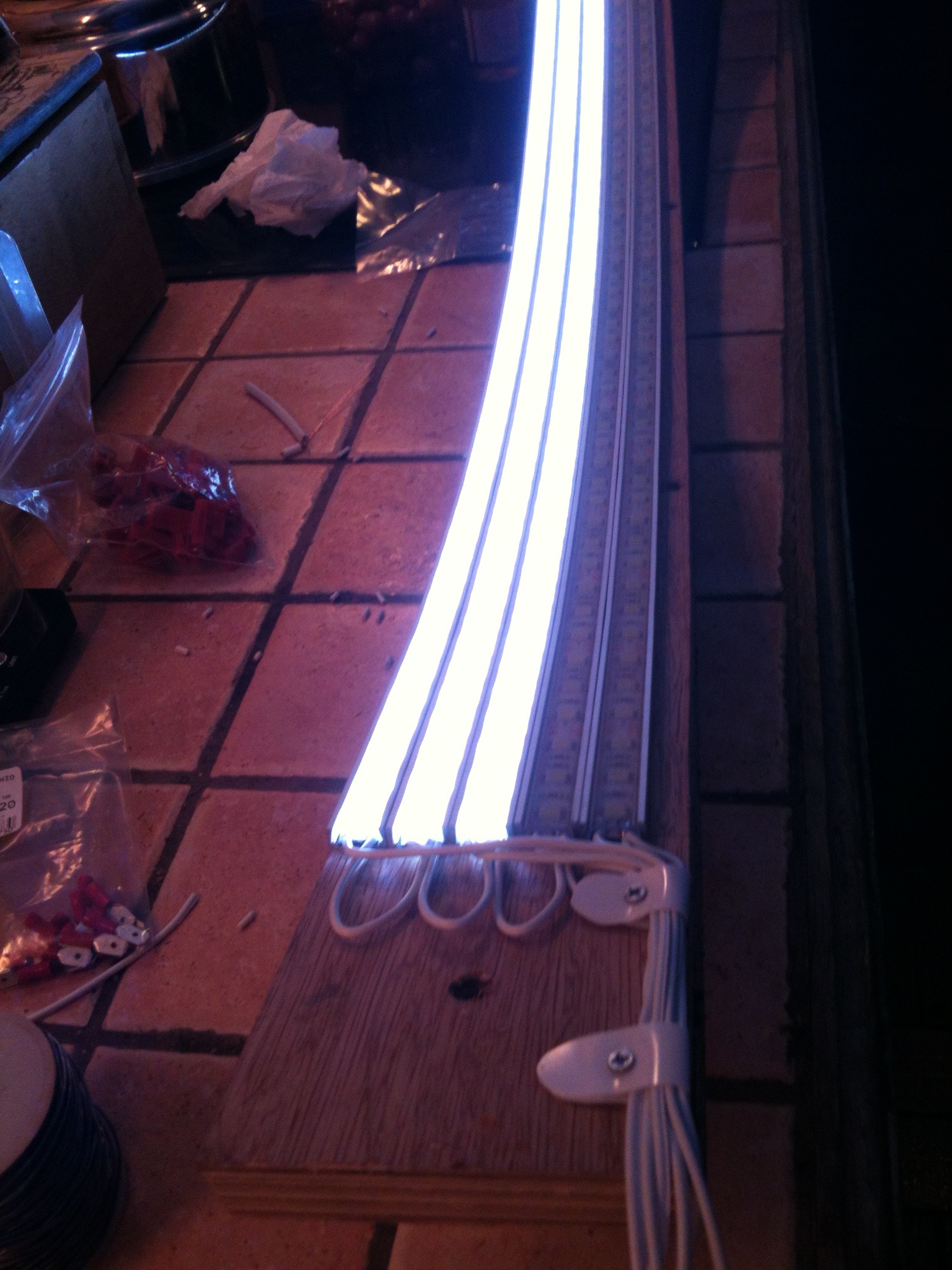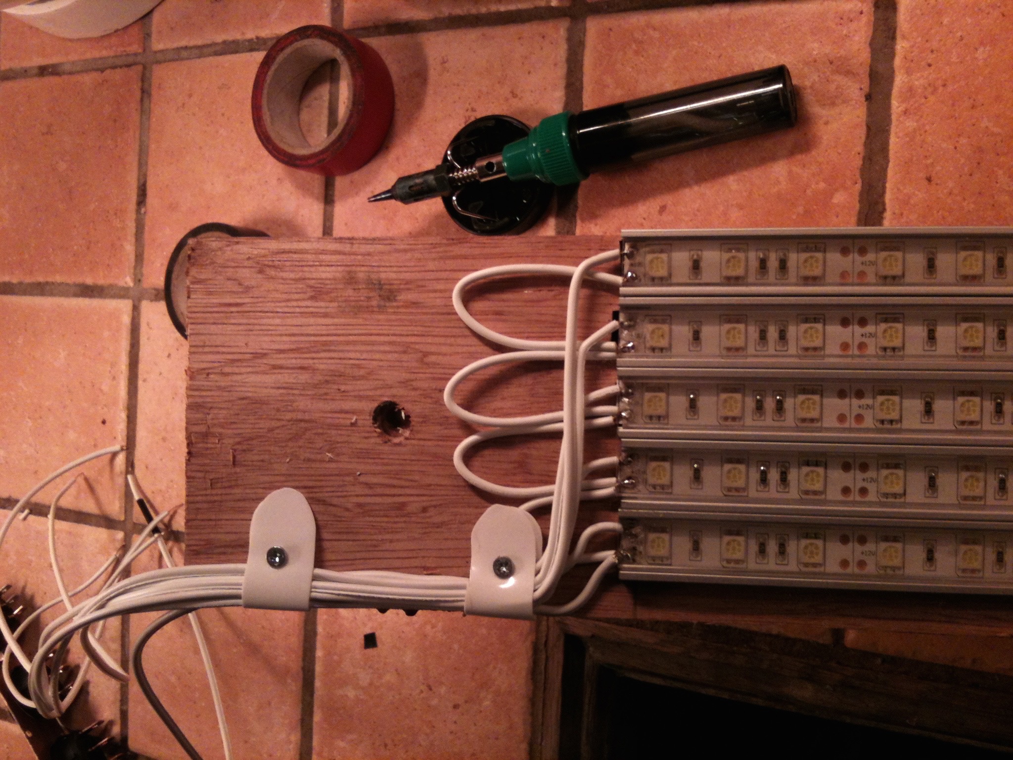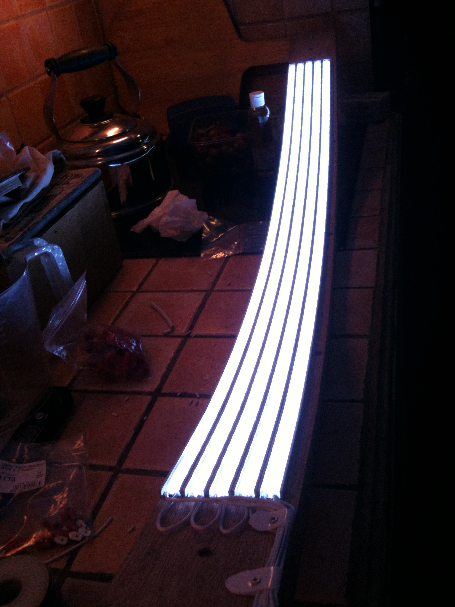 Measuring the arch at 120cm I decided that I would cut the tape in to five 1m lengths and mount each strip in the aluminium channel and use the switches to turn each length on or off giving me five levels of brightness from 400 lumens to 2000 lumens in 400 lumen steps.