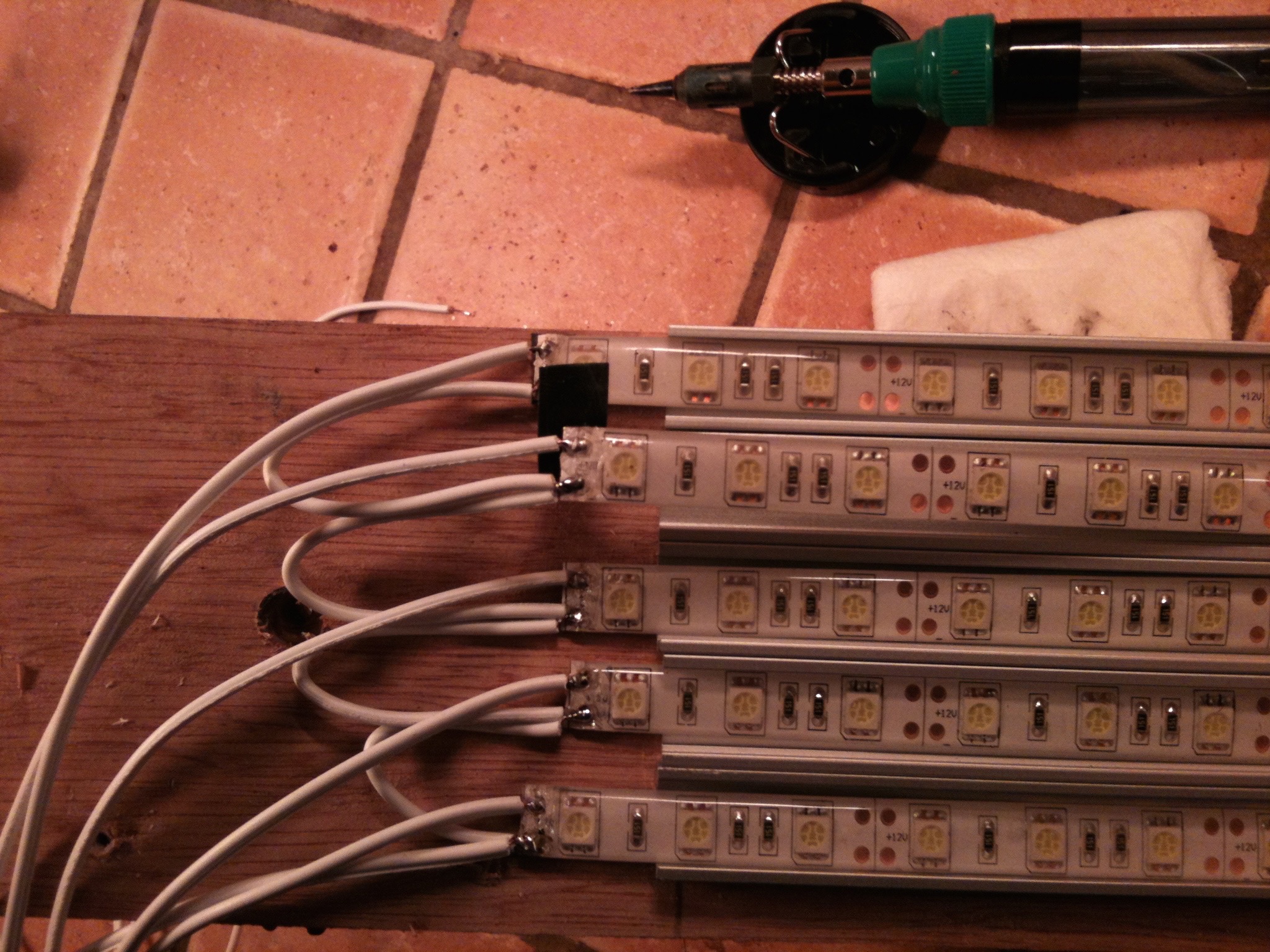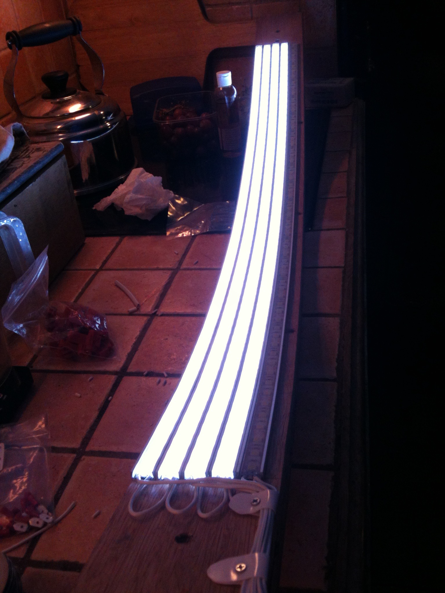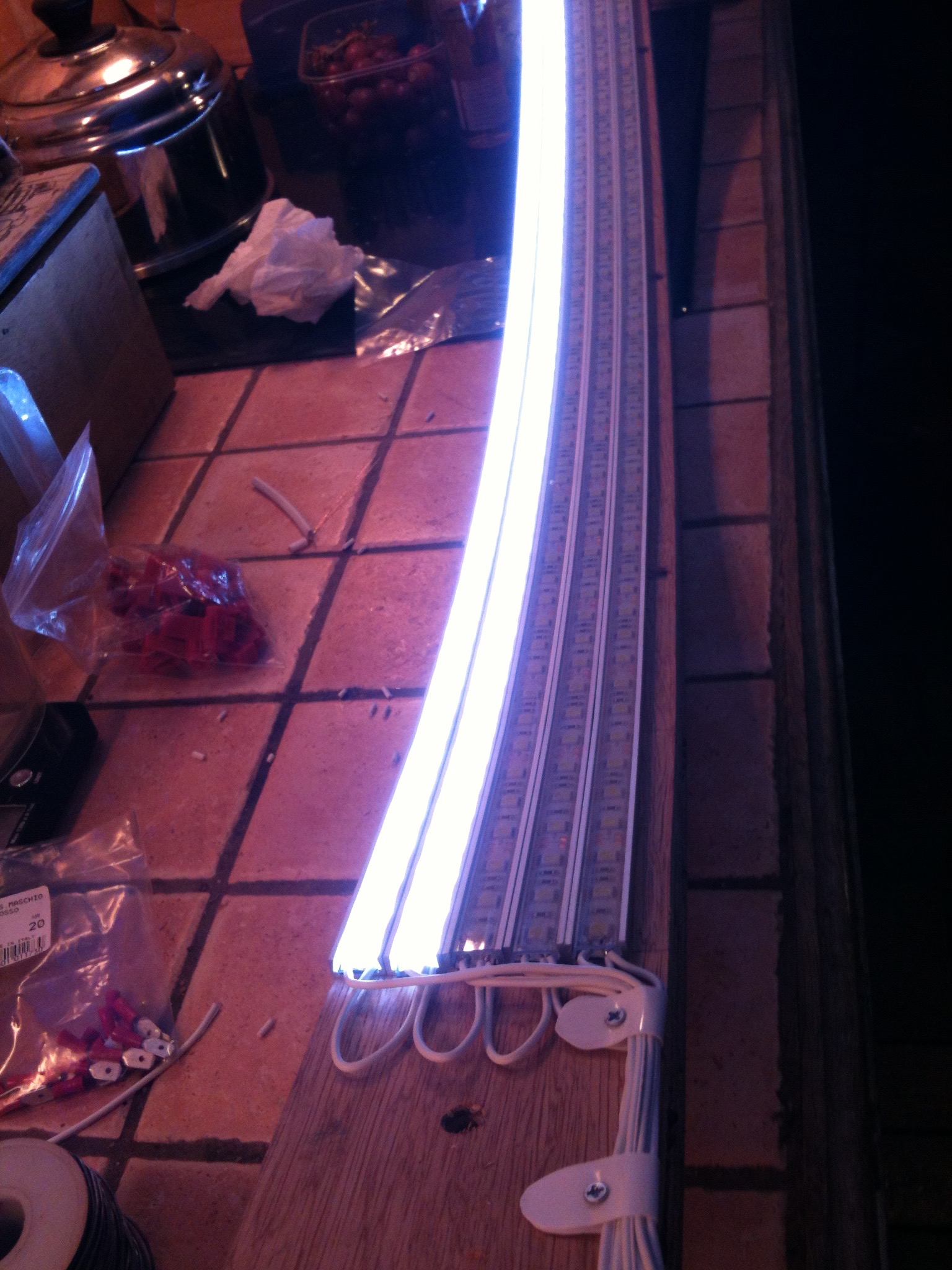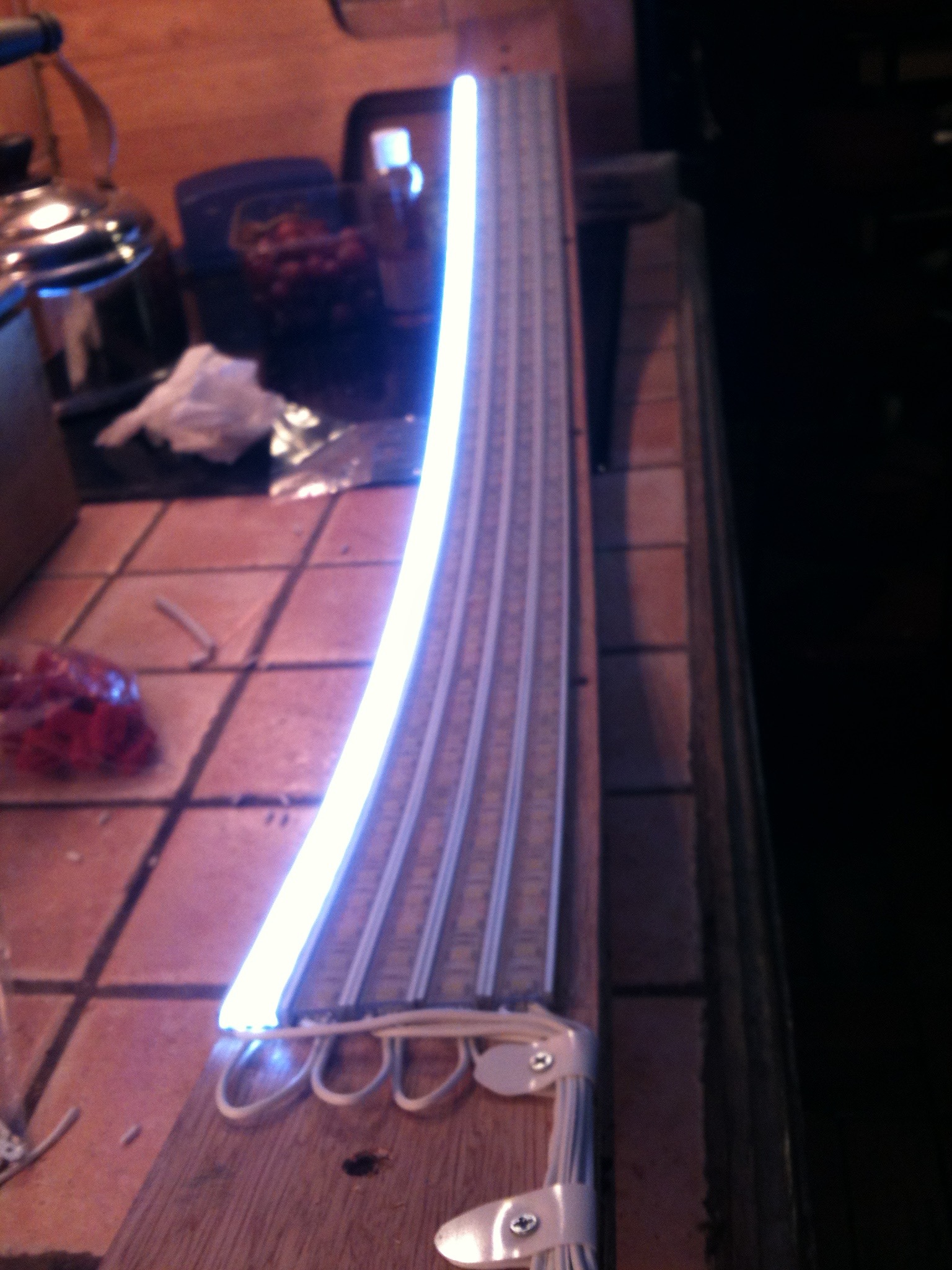 Measuring the arch at 120cm I decided that I would cut the tape in to five 1m lengths and mount each strip in the aluminium channel and use the switches to turn each length on or off giving me five levels of brightness from 400 lumens to 2000 lumens in 400 lumen steps.